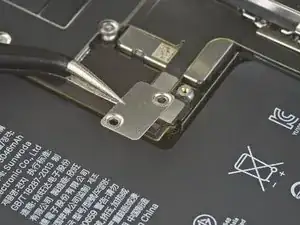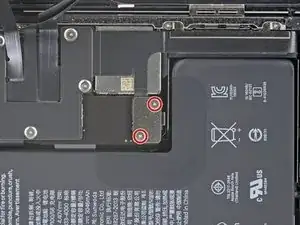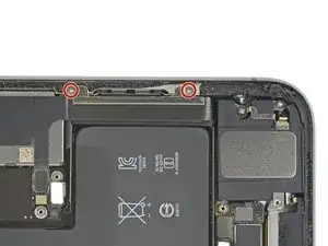 Используйте отвертку Y000, чтобы выкрутить два винта 1,4 мм, крепящие кронштейн гибкого кабеля Lightning.