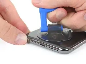 Разместите присоски ближе к нижнему краю iPhone — одну на передней и одну на задней панели.