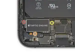 Используйте лопатку, чтобы отсоединить гибкий кабель Taptic Engine, поддевая его строго вверх из разъёма.