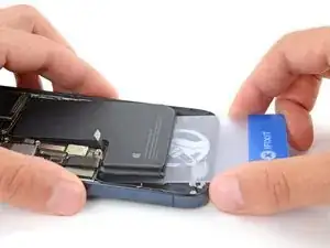 Если вы удалили все три растягивающиеся клейкие полосы, поздравляем — вы теперь можете извлечь батарею! Если нет, выполните следующие два шага, чтобы разделить клей спиртом и пластиковой картой.