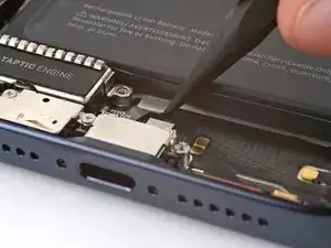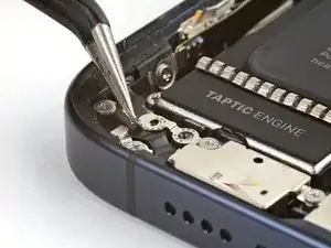 Используйте отвертку P2 с треугольным прорезом, чтобы удалить два винта длиной 7.2 мм по обе стороны от порта зарядки.