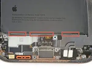 Батарея вашего iPhone закреплена тремя растягивающимися клеевыми полосками. В следующих четырёх шагах показано, как их удалить и освободить батарею.