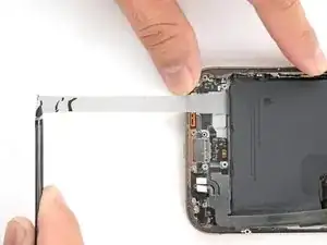 Просуньте медиатор под шлейф нижнего узла, чтобы отделить его от Taptic Engine.