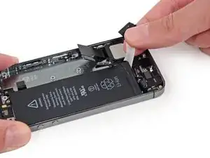 Медленно потяните одну из клейких полос аккумулятора от батареи в направлении низа iPhone.