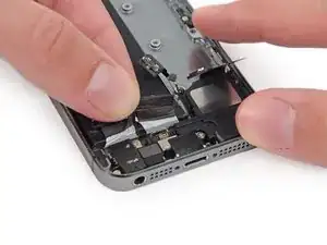 Будьте осторожны, чтобы не зацепить её за угол батареи или за какие-либо другие внутренние компоненты iPhone.