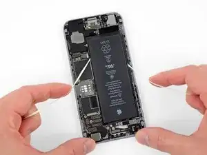 Если полоса порвётся, аккуратно попытайтесь достать её пинцетом (не повредив батарею) и продолжите тянуть. Если полоса оторвётся под батареей и её нельзя извлечь, продолжайте выполнять следующие шаги.