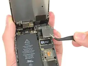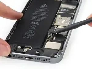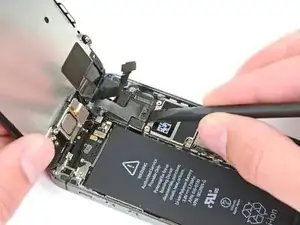 Снимите металлическую пластину разъёма батареи с iPhone.
