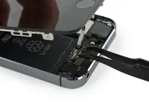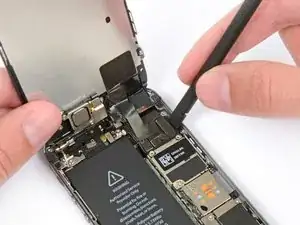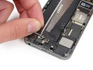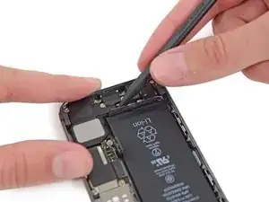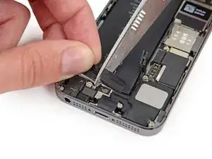Осторожно, чтобы не зацепить другие внутренние компоненты iPhone.