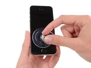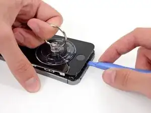 Держа iPhone одной рукой, потяните за присоску, чтобы слегка отделить край передней панели у кнопки Home от заднего корпуса.