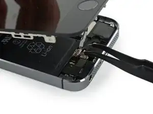 При сборке потребуется заново установить крепление кабеля Touch ID. Верхняя часть крепления должна соскользнуть между батареей и разъёмом кабеля Touch ID, перед металлической защёлкой. Нижняя часть должна защёлкнуться поверх разъёма.