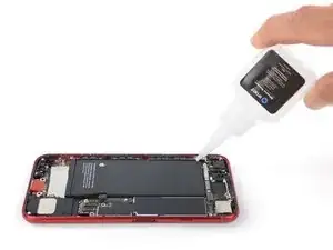 Если какие‑либо клеевые полоски оборвались и аккумулятор остался приклеенным к задней панели, удалите его, капнув несколько капель изопропилового спирта (90% или выше) под аккумулятор рядом с местом приклеивания.