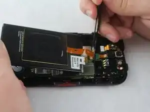 С помощью пинцета разблокируйте порт шлейфа и осторожно потяните шлейф вверх, пока он не отключится.