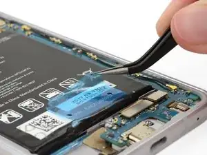 Чтобы установить новую батарею, очистите остатки клея с телефона и используйте клейкую ленту Tesa для крепления новой батареи. Не используйте повторно батарею, если она сморщена или деформирована.