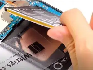 Поднимите аккумулятор пальцами, чтобы вынуть его из телефона.