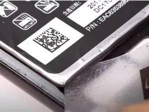 Осторожно проведите пластиковой картой по левой стороне аккумулятора, отделяя аккумулятор от клея.
