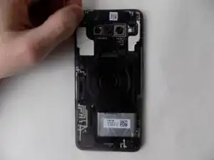 Используя пластиковую лопатку, откройте заднюю крышку телефона, перемещая лопатку вдоль всех боков, чтобы увидеть внутренние компоненты.