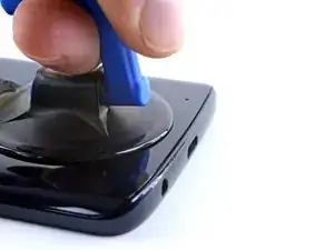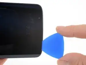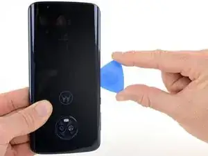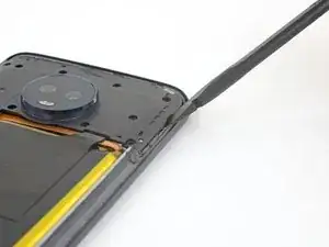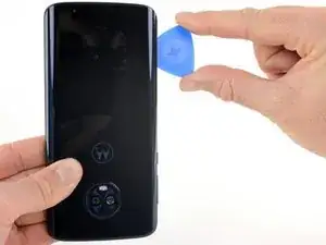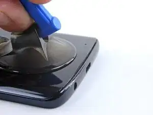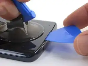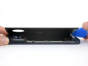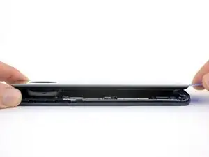 Проведите медиатором по всей верхней кромке телефона, чтобы разрезать клей, удерживающий заднее стекло.