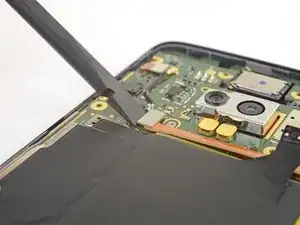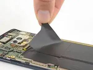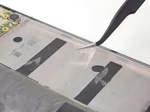 Самая большая наклейка, покрывающая аккумулятор и плату, не обязательно должна сниматься с платы для удаления аккумулятора — просто отделите её от аккумулятора.