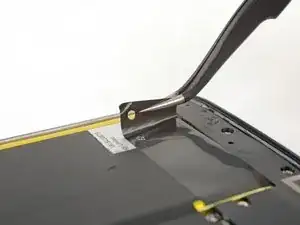 Возможно, придётся повторно разогревать и прикладывать iOpener, чтобы дополнительно смягчить клей. Клей прочный, и может потребоваться несколько попыток, чтобы поддеть лопатку под аккумулятор.