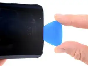Проведите медиатор по всей нижней кромке телефона, чтобы разрезать клей, удерживающий заднее стекло.