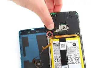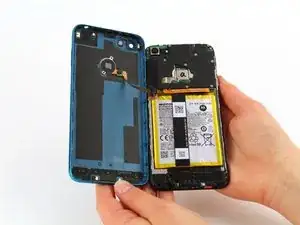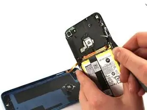 Осторожно снимите заднюю крышку. Не тяните сильно, так как она всё ещё соединена с датчиком отпечатков пальцев внутри телефона.