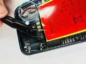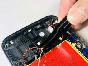 Удалите красный и черный кабели аккумулятора из разъема с помощью пинцета.