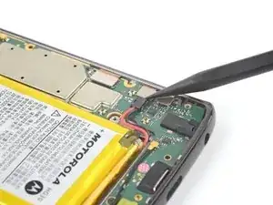 С помощью пинцета аккуратно отклейте чёрную ленту, закрывающую аккумулятор.