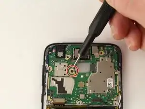 Осторожно подденьте материнскую плату снизу инструментом для вскрытия iFixit.