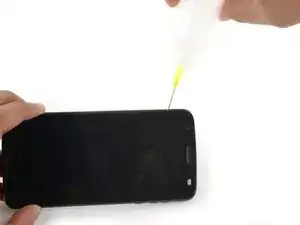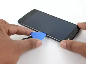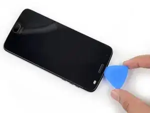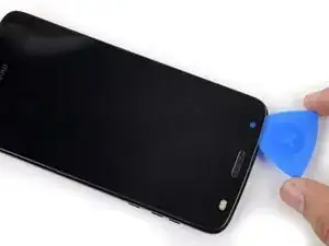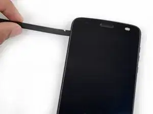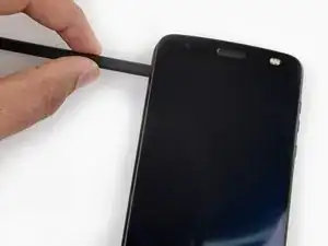 Поскольку верхний дисплей в сборке экрана гибкий и прикреплён лишь небольшим количеством клея, вы можете приподнять только сам дисплей, а не всю сборку. Если это произойдёт, выньте инструмент и повторите попытку, применив больше вниз направленной силы, чтобы попасть под всю сборку.