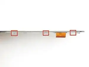 Передний сенсорный модуль и кабель окружают правую полоску клея сверху и справа, поэтому поддевание или разрезание с верхней или правой стороны может повредить кабель. В следующих шагах описано, как отделить клей с левой стороны.