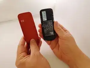 С помощью больших пальцев нажмите и сдвиньте вниз заднюю крышку Nokia 1010.