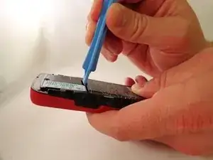 Вставьте инструмент для открывания в выемку над аккумулятором.