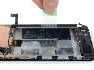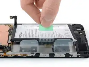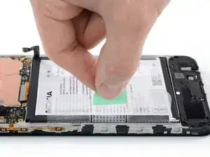 Если зеленая вкладка порвется, вы можете использовать внешние вкладки для извлечения батареи вместе с клеевой пленкой под ней. Будьте готовы, что это займет больше времени и, возможно, потребуется тепло для размягчения клея.