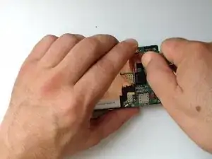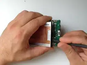 Используйте пластиковый инструмент с тонким концом и отсоедините аккумулятор от центральной рамки.