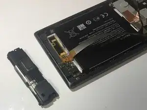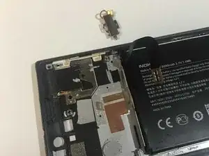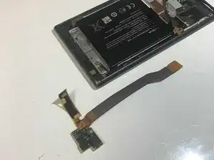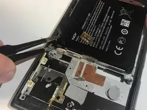 Пинцетом осторожно снимите оранжевый язычок, ближайший к динамику.