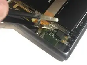 Снимите плату, проведя пинцетом между ней и задней частью экрана. Поднимите вверх.