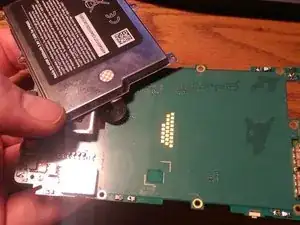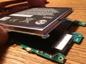 Аккумулятор также приклеен к плате, поэтому используйте пластиковую лопатку или аналогичный инструмент, чтобы оторвать аккумулятор от платы.