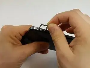 Вставьте инструмент для извлечения SIM-карты в маленькое отверстие, расположенное в верхнем правом углу телефона, прямо над кнопками регулировки громкости.