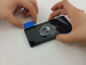 Используйте присоску для безопасного снятия панели с устройства. По мере работы вокруг краёв панели сохраняющееся тепло может снова склеить панель с корпусом, поэтому поднимайте заднюю панель до того, как клей успеет снова зафиксироваться.