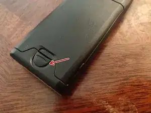 Подденьте защёлку отпирания аккумулятора ногтем и сдвиньте её вниз.