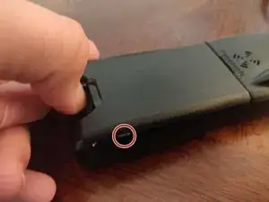Другим пальцем подденьте один из двух язычков (один обведён) и продолжайте вынимать аккумулятор.
