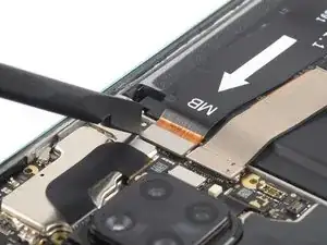 Используйте лопатку, чтобы отключить кабель питания и кнопок громкости, поддев соединитель прямо вверх из его гнезда.