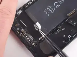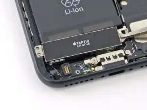 Используйте плоский конец лопатки, чтобы отсоединить разъём Taptic Engine от его гнезда на плате.