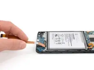 Аккуратно отогните шлейф дисплея от аккумулятора, чтобы освободить место для извлечения.