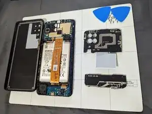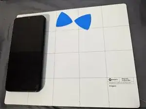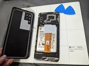 Используйте лопатки iFixit, чтобы приподнять пластиковую заднюю крышку смартфона.