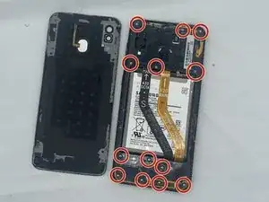 Удалите все тринадцать винтов Philips размером 3.6 мм, которые крепят среднюю рамку.
