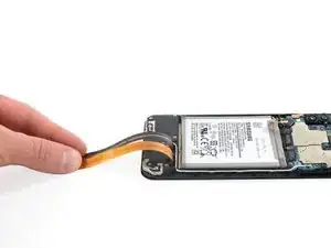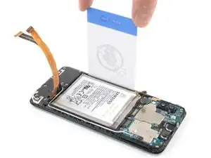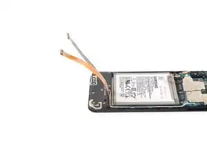 Отогните два шлейфа в сторону нижней части телефона и уберите их с области аккумулятора.