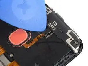 Используйте инструмент для отщёлкивания, чтобы поддеть и отключить датчик отпечатка пальца.