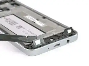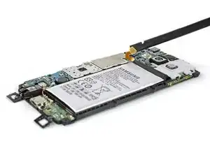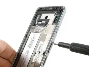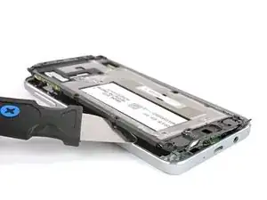 Используйте лопаточку или монтажную лопатку, чтобы попасть между средней рамкой и аккумулятором и отделить его от клея.