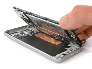 Используйте джимми, чтобы приподнять среднюю рамку с левой стороны телефона, где расположен аккумулятор.